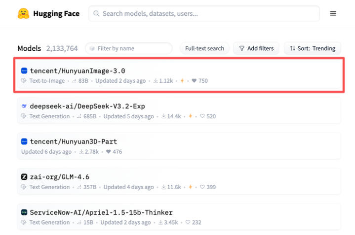 混元图像3.0模型也同样受到开发者的欢迎,发布后不久即登上了HuggingFace开源社区模型热榜的第一名,持续一周稳居第一;如今又登上了LMarena榜单的榜首,反映了用户与社区对模型的关注与认可。